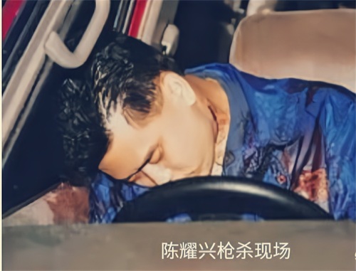 那天,陈耀兴赛车拿下亚军,到酒店庆祝到深夜准备驱车回家,他喝得醉醺醺的,人刚刚坐到车上,还未启动的时候,突然三辆春风水冷的大绵羊极速靠近陈耀兴的车窗,车上坐的皆是蒙面大汉,他们掏出裤兜里的AK47对着陈耀兴轮番乱扫,陈耀兴避无可避,命丧当场。