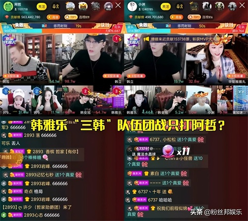 而韩雅乐与韩立、韩安旭三位主播组成的“三韩”团战队伍,最近也都很给力。