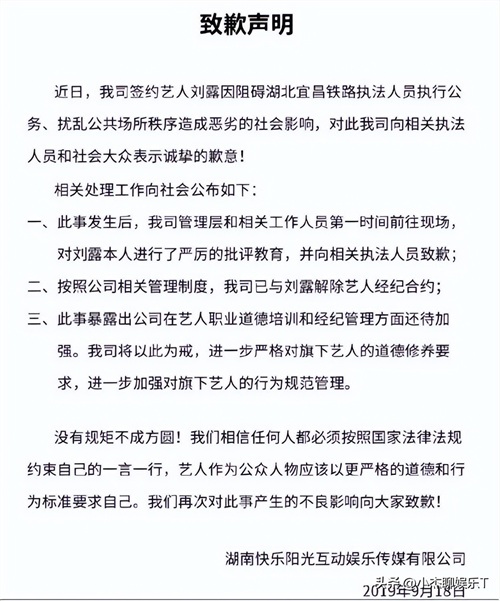 随后也很快跟刘露解除了合约。