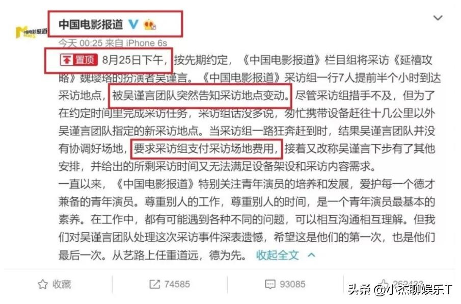 然而换来的却是吴谨言经纪人“更换拍摄场地”的消息。