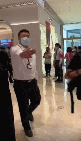 并且这群保安还手拉手地把她围了起来,