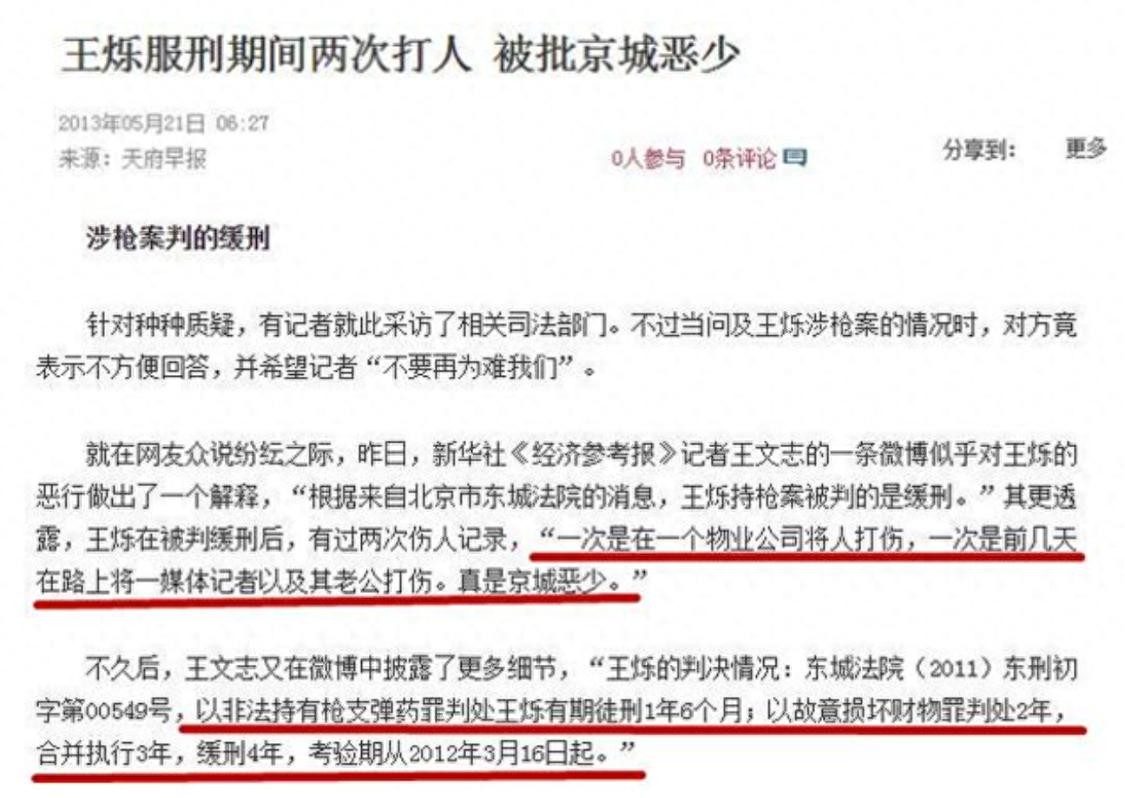 本以为经过这次王烁会吸取教训,没想到在服刑期间,王烁又动手打人,差点吃牢饭,从此“京城恶少”的骂名是焊死在他身上。
