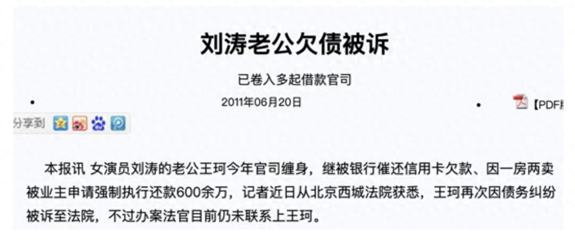 然而刘涛的阔太生活还没过两年,王珂就破产了,甚至是连260万的信用卡都还不起被银行追债,欠债高达4个亿。