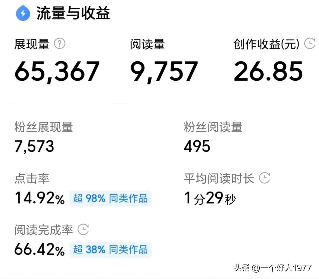 但1800天总收益才88.39元呵呵,最高一篇收益也才26.85元,我玩头条并不是为了赚钱,给多少就要多少吧,一篇文给几分也算是一种鼓励,但获取的知识量比那几个钱更重要得多。
