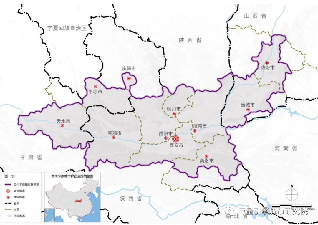 按照《关中平原城市群发展规划》,关中平原城市群规划范围包括陕西省西安、宝鸡、咸阳、铜川、渭南 5 个市、杨凌农业高新技术产业示范区及商洛市的商州区、洛南县、丹凤县、柞水县,山西省运城市(除平陆县、垣曲县)、临汾市尧都区、侯马市、襄汾县、霍州市、曲沃县、翼城县、洪洞县、浮山县,甘肃省天水市及平凉市的崆峒区、华亭县、 泾川县、崇信县、灵台县和庆阳市区。
