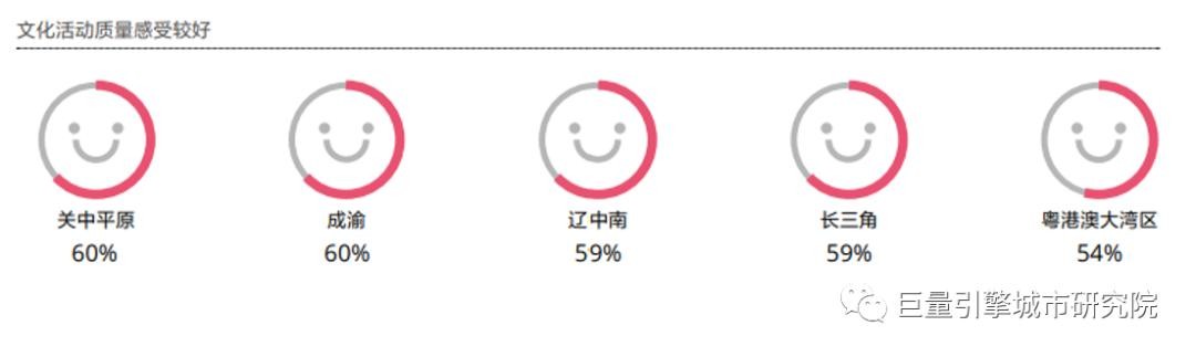 而网红城市崛起的背后大多是文化的溢出,是越来越多的人认可这一城市的历史文化与风土人情。能够让文化溢出,当地人的感受就更加深刻,关中平原城市群用户对其所生活的城市文化活动质量就给予了较高的评价。2021年5月巨量算数抖音用户调研显示,近60%的抖音用户认为其所在城市文化活动质量感受较好,位居19大城市群之首,高于成渝城市群。
