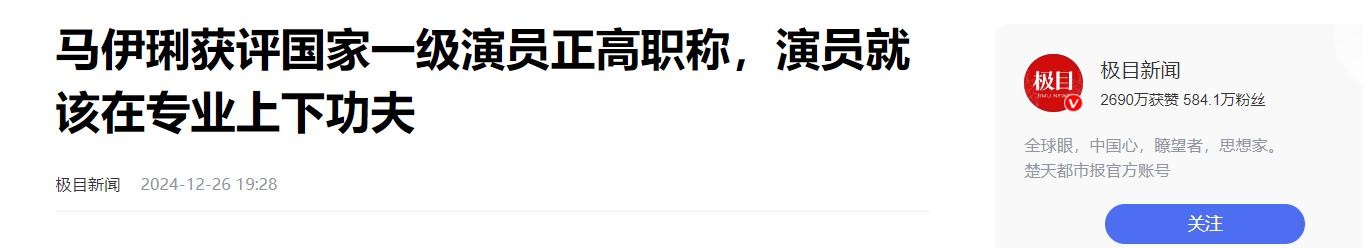 12月26日,上海市职称服务系统发布了一条喜讯,马伊琍获得了国家一级演员正高职称。