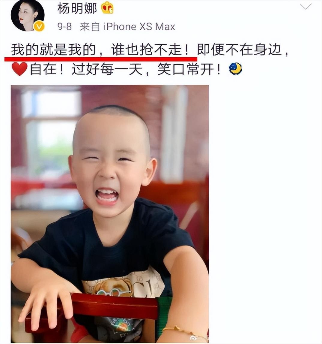而现在杨明娜也已经要回了孩子,并且在网上发文说:自己的谁都抢不走。