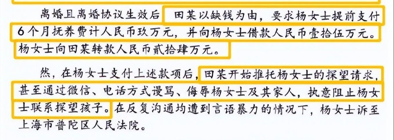 原本杨明娜每个月都要支付1w5的抚养费,而田亮每一次都以孩子作为要挟,变本加厉的要钱。