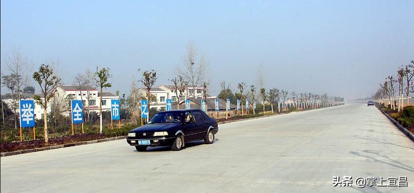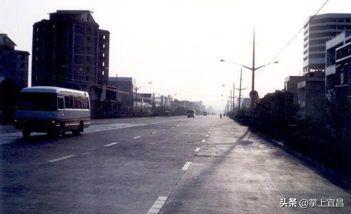 金猇大道街景(1999年拍摄)。1992年刚成立猇亭经济技术开发区时,古周路(古老背到老周场)改扩建为6车道的金猇大道。当时,这就是猇亭经济技术开发区的主干道,也堪称为宜昌市最宽的道路。宜昌长江公路大桥通车以前,所有进出四川、重庆的车辆都要走这条道路,并在此过轮渡。