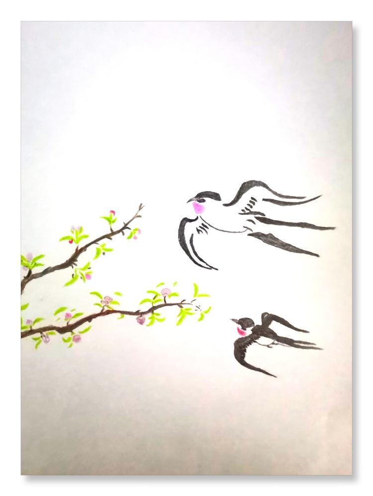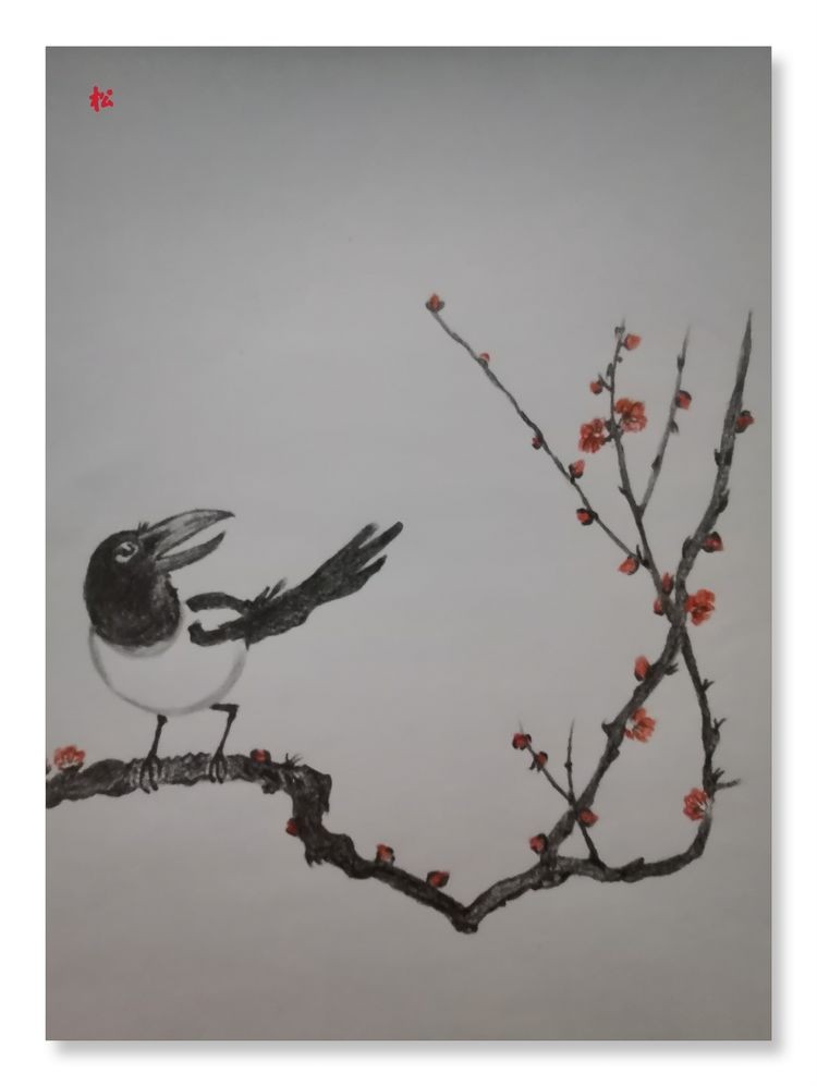 春回大地,我们迎接着你,去拥抱勃勃生机的春天。蔡翠松创作的绘画《迎接春天》解读了这一切,请欣赏她的画作。