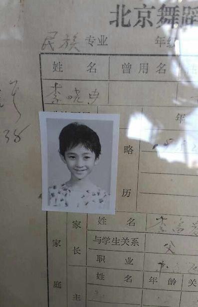 在北京舞蹈学院的信息登记表上,贴着一张李小冉小时候的登记照。