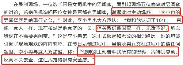 用李小冉自己的话说就是,两人关系像“闺蜜”一样,无话不说。