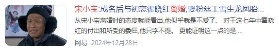 资料参考:2024-12-28网易——宋小宝:成名后与初恋霍晓红离婚,娶粉丝王雪生龙凤胎,如今怎样