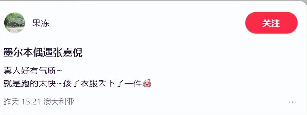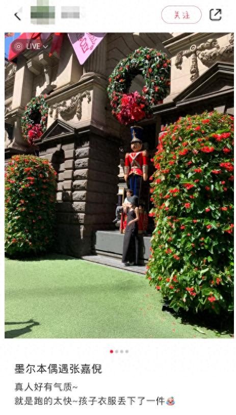 将近一年半没有露面的张嘉倪,近日在墨尔本市政厅被网友偶遇。