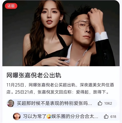 尤其是去年11月,买超被爆出婚内出轨一名女子,并与女子同住酒店,之后张嘉倪没辟谣、没帮老公说话,而是发了一则六字回应:爱得起,放得下。让不少人猜测她是不是下定决心离婚了。