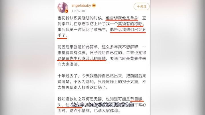 长文中,baby称黄晓明为黄先生