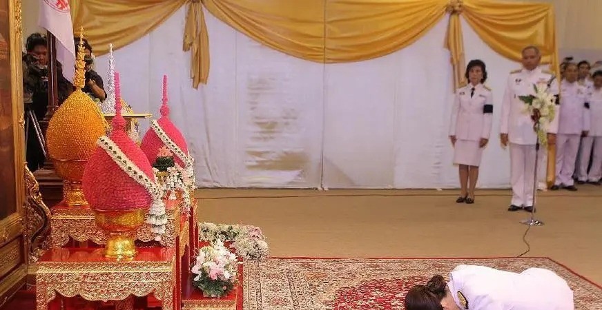 即便是贵为总理的英拉,在国王面前,也要匍匐在地,行跪拜大礼。