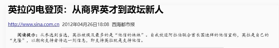 信息来源:《英拉闪电登顶:从商界英才到政坛新人》,西海都市报,2012年4月26日。