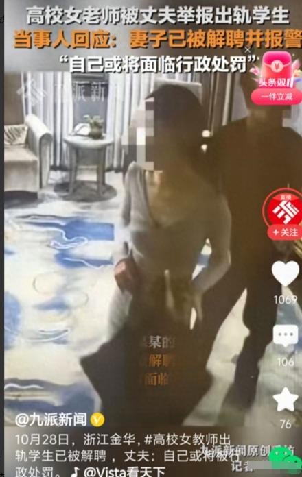 女老师工作丢了,目前也确实丢了,金华职业学院已经把女老师开除了。