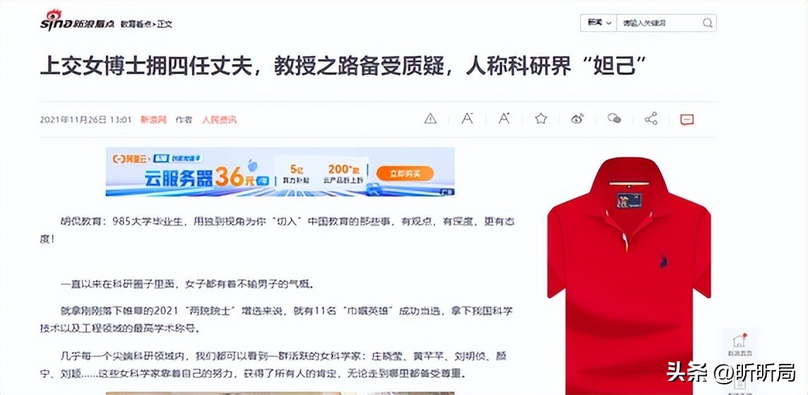 新浪网:2021年11月26日 上交女博士拥四任丈夫,教授之路备受质疑,人称科研界“妲己”