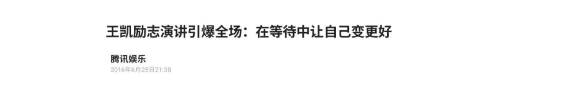 【4】腾讯娱乐,2016-06-25,“王凯励志演讲引爆全场:在等待中让自己变更好”.