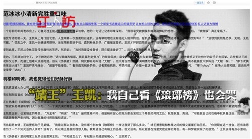 【2】腾讯网,2015-10-11,靖王王凯:我自己看琅琊榜,也会哭.