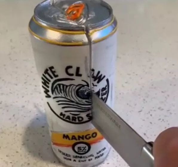 如果不是用刀子切开的话我真不敢相信这是一个蛋糕,还带着拉环真是一杯饮料啊。现在的技术真是进步了,这么高这么逼真的饮料蛋糕,还是很让人羡慕的。