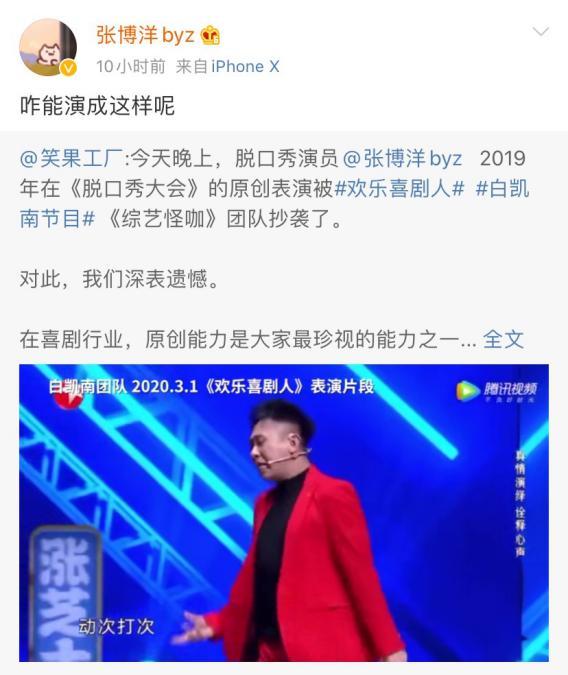 白凯南张博洋事件是真的吗(白凯南欢乐喜剧人被曝抄袭)