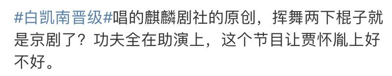 白凯南抄袭并非偶然,此前,就有网友指出,2月16号晚上播出的第四期《欢乐喜剧人》,白凯南的作品中演唱京剧版《燃烧我的卡路里》和《白龙马》,要知道,京剧版的这两首歌是德云社的麒麟剧社演员贾怀胤的代表作,在18年就上过热搜,获得网友的认可。