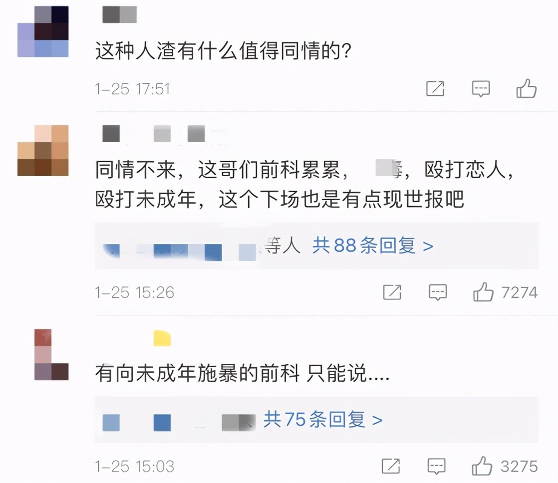 原本应该是三十而立的大好年华,Iron短暂的一生止步于此,然而网友们却对他的遭遇表示:“这种人渣有什么值得同情的?”“同情不来,这哥们前科累累,殴打恋人,殴打未成年,这个下场也是有点现世报吧。”