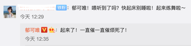 之前郁可唯工作人员有透露郁可唯排练舞蹈困死了,现有粉丝在线催起床练舞,郁可唯被催到有起床气哈哈哈哈哈哈哈哈