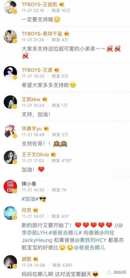 2016年11月向佐又马不停蹄代替黄致列参加《爸爸去哪儿》。底下的转发,依然是声势浩荡。