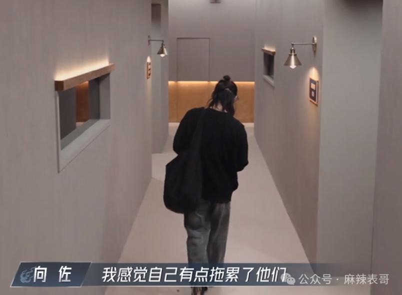 当时另外三个正商量着让向佐不跳舞,以武术的方式单独表演,向佐说要找导演组聊天,然后背上他帅气的背包就走了。