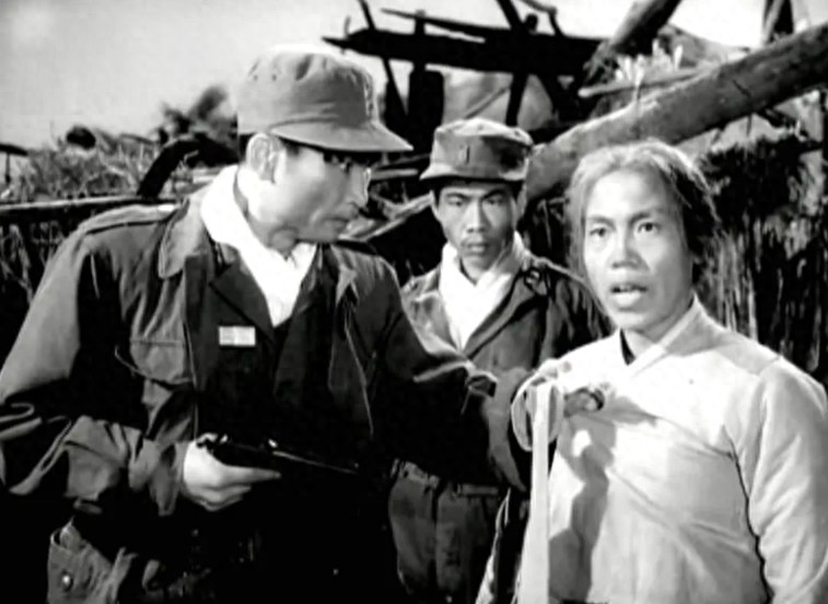 影片一开始就抓住了观众的心:冯大娘带着女儿秀子在挖野菜,女儿手里的苦菜花掉了。这时汉奸王柬芝坐着马车回村,将苦菜花碾碎了。冯大娘怒目圆睁,表现出内心的仇恨。