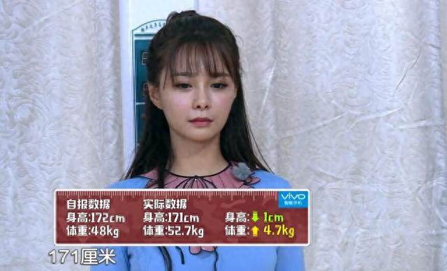 沈梦辰 自述身高172cm、体重48KG。而测试机显示:身高171cm 体重52.7cm瞬间胖了9斤啊,打脸啊有木有~