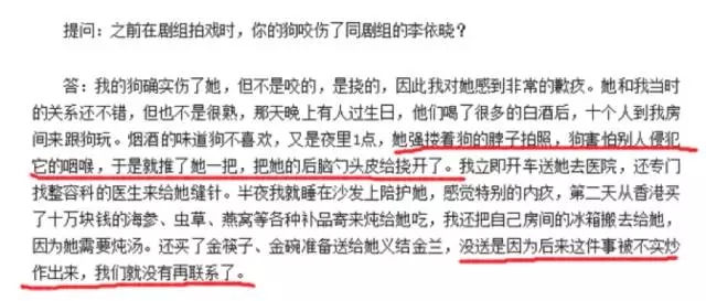 到了2015年11月,叶璇接受《新京报》的记者采访,她公开告诉大家,自己的狗并没有咬伤李依晓而是抓伤李依晓,原因是李依晓非要搂着狗拍照,狗对自己的喉咙非常敏感,最后挣扎中才抓伤了李依晓。叶璇说自己在李依晓出事后第一时间就向她道歉了,还买了十万多的补品给李依晓,当时自己的确想和李依晓结为姐妹,但后来发生了一些不实报道,所以就作罢。