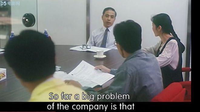 影片结尾,又一个工作日的早晨,董事长和新的总经理西装革履,迎接职员上班,一一向每个人道早安。