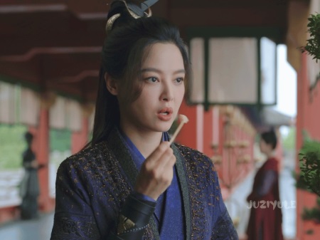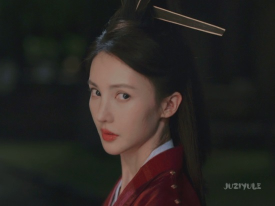 毛晓彤饰演的北齐大公主一身红衣亮相,她坐在亭子边上若有所思,像是有什么心事。