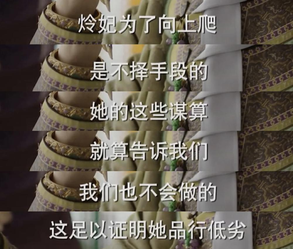但如懿和她的姐妹们却看不起她的宫女出身,不接纳她进入小团体,说她出身为奴却非要翻身,"我亲眼看到她勾搭皇上,实在算不上一个安分的人",最后把她逼成了全剧第一反派。