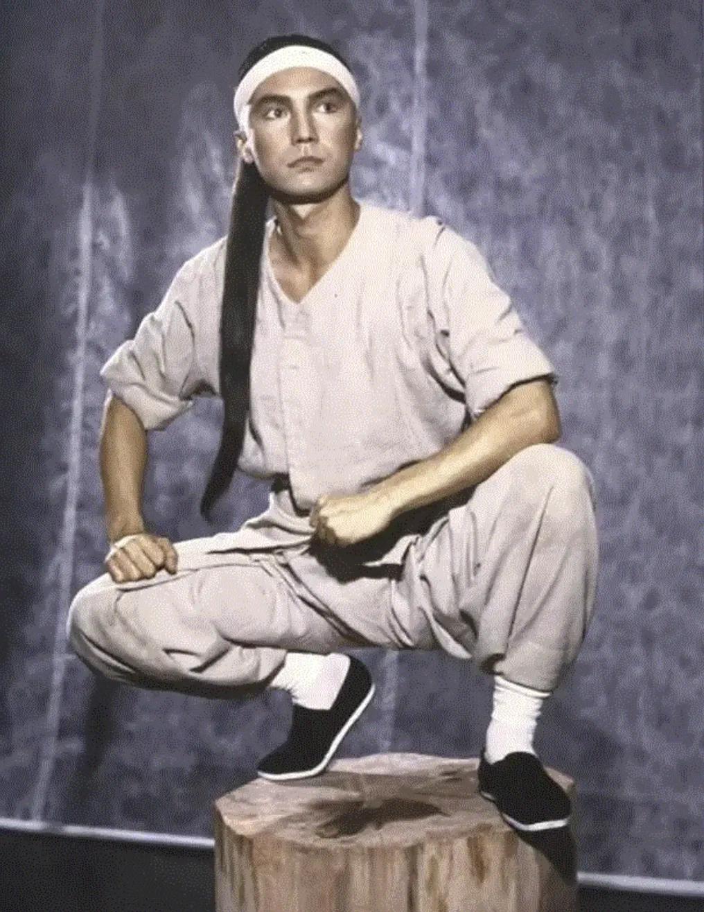 上一辈,龙卷风(古天乐)太极拳法了得,绝技是双手撑地的乌龙绞柱。