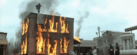 你跨摩托从2楼破玻璃而下,我就从8楼摔水池,他则从9楼跳火海,不管,比得就是狠,拿命搏。
