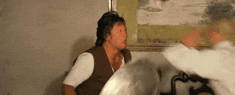 承上启下的还有刘家良,他将武侠从硬桥硬马转向综合杂耍,各种场面调度、道具运用达到趣味江湖的效果。