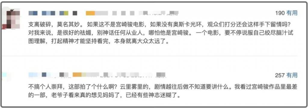 即使在票房上如此成功,本片却因为晦涩难懂的成长主题,让片子的口碑在国内上映时,出现了截然不同的两极分化。
