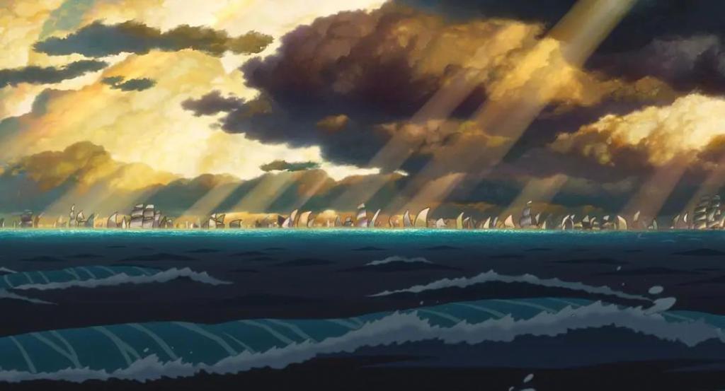 来到"下世界"后,真人先是历经鹈鹕的袭击,幸得年轻的雾子相救,此时远处幽灵船的浮现和亡魂的海路,暗示着人世间最终的归宿——冥界。