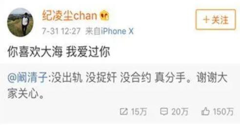 如果 QQ 空间要找代言人,我首推纪凌尘,他那条著名的分手微博,堪称集初中生空间签名大成之作。