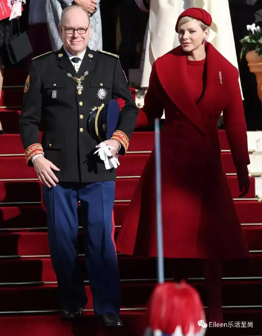 夏琳王妃一袭红衣,状态大好,就连耳环都是契合摩纳哥国旗的红白两色。