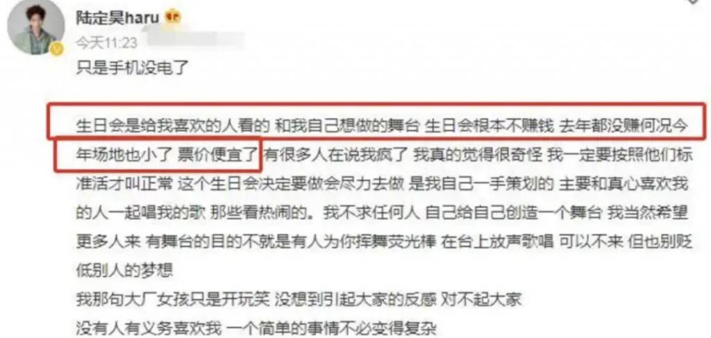 内容包括"看他本人+听他唱歌+看他演戏+给你发疯(原话)",