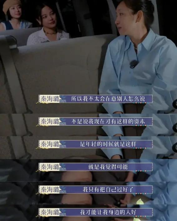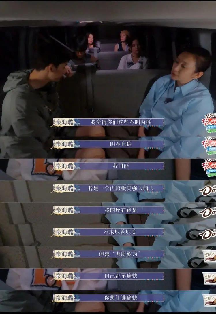 但回看《花儿与少年》,赵昭仪和王安宇聊起了内耗一事,秦海璐的表达片段。