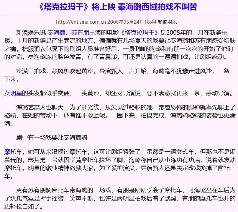 剧组在新疆拍摄《塔克拉玛干》,她不怕条件艰苦,为了效果更好,主动要求再来一条。